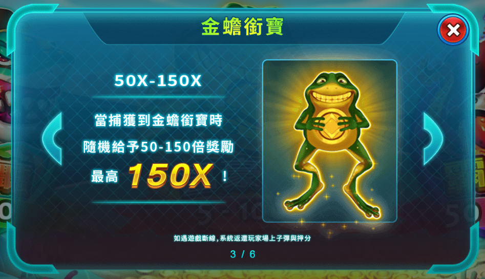 - 金蟾銜寶(50x-150x) :成功捕獲,即可隨機贏得 50 至 150 倍 獎勵!