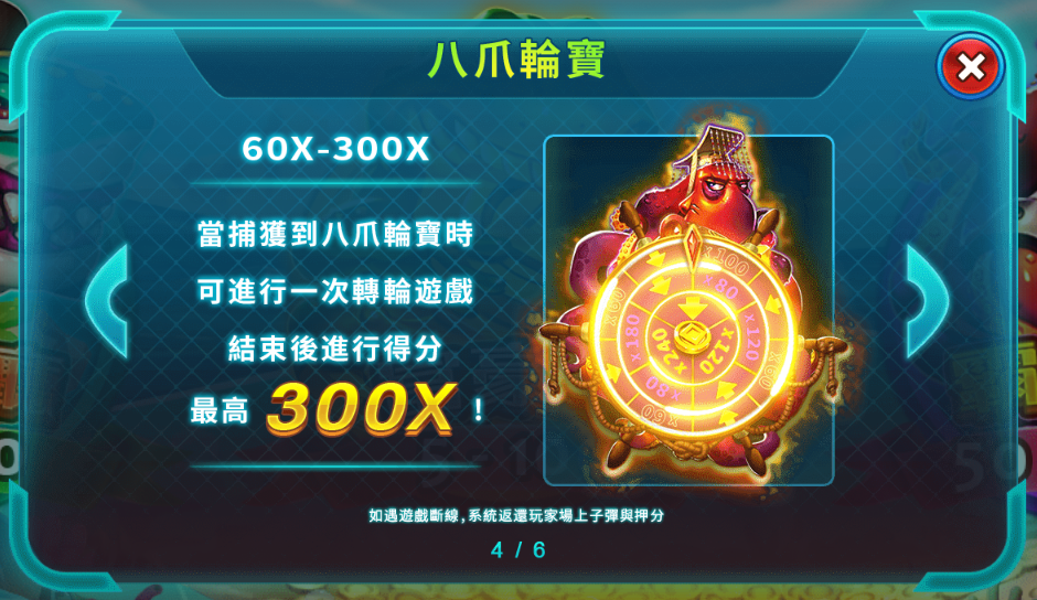 - 八爪輪寶:成功捕獲後觸發轉輪機制,最高可獲得 300倍 獎勳!