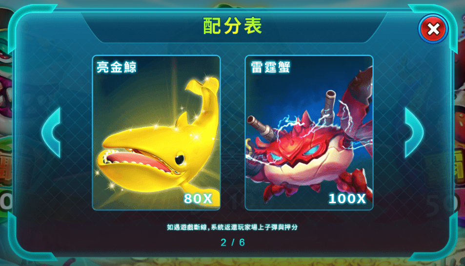 - 雷霆蟹(100x) & 金鯨(80x):極具價值的特殊魚種,擊中即可收穫高額獎金!